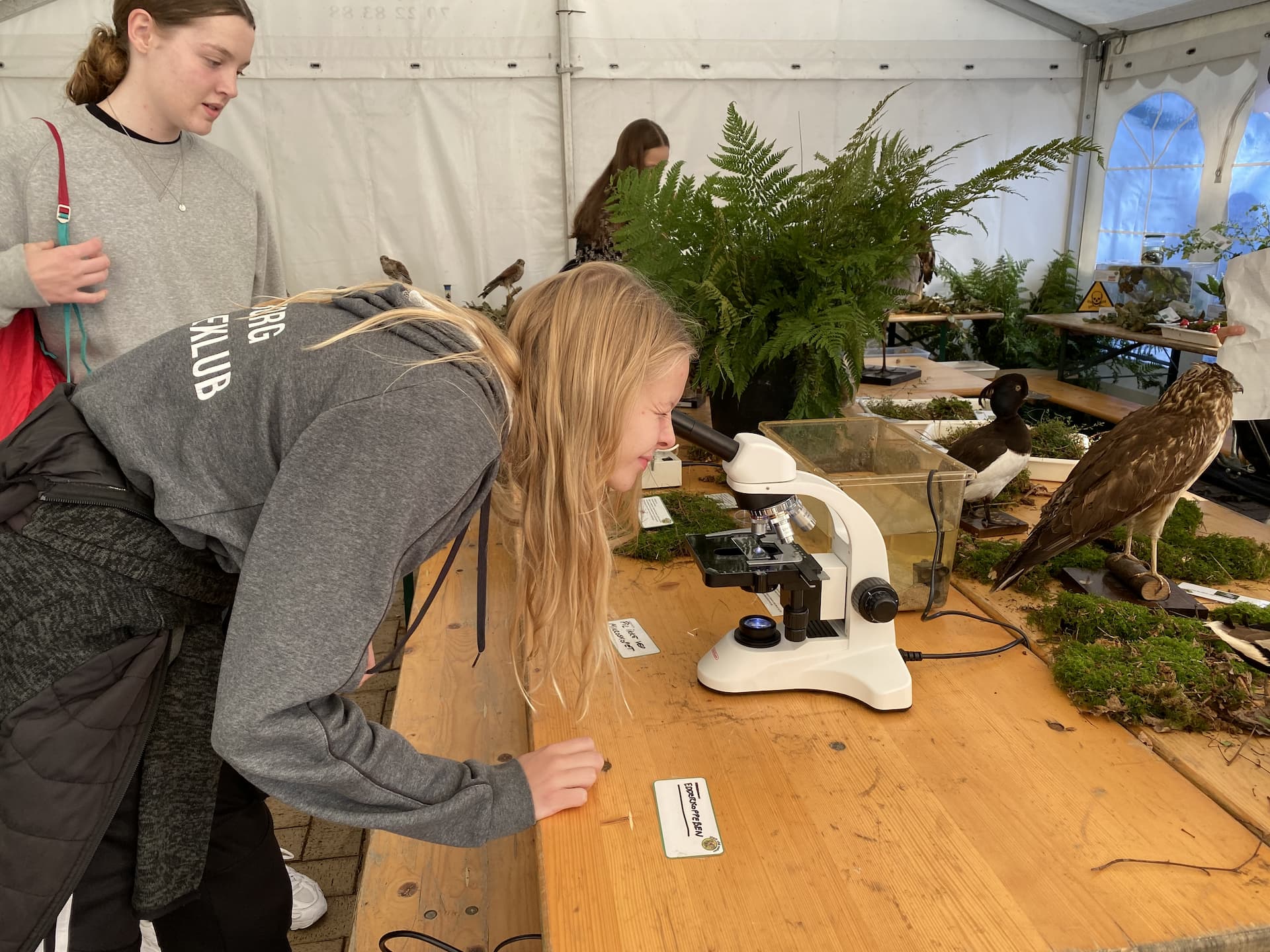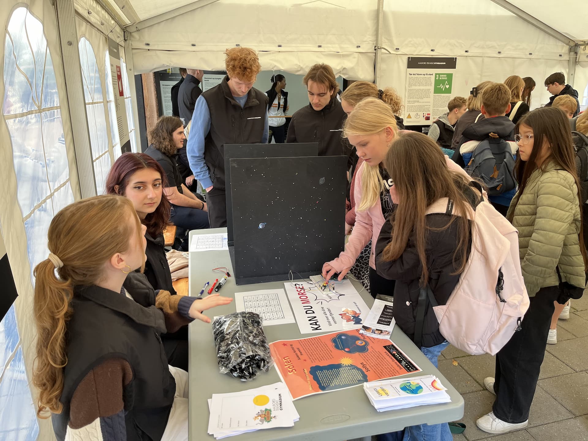 "Det er rigtig fedt, at eleverne kan komme til at røre ved noget. Det er også godt, at der er stande med folk fra både gymnasierne, UCN og universitetet til at formidle deres fag. Alle elever er forskellige, men dem jeg har med virker til at synes, at det er spændende, og at de synes, det er fedt, at det er så ’hands on’."